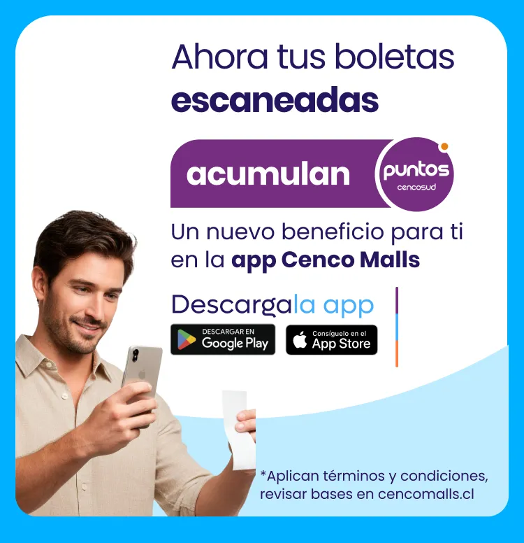 Recuerda que las boletas sobre $500 acumulan puntos Cencosud. |